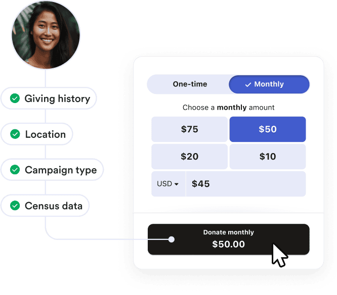 Personalize ask amounts for every donor based on their unique giving history and characteristics.