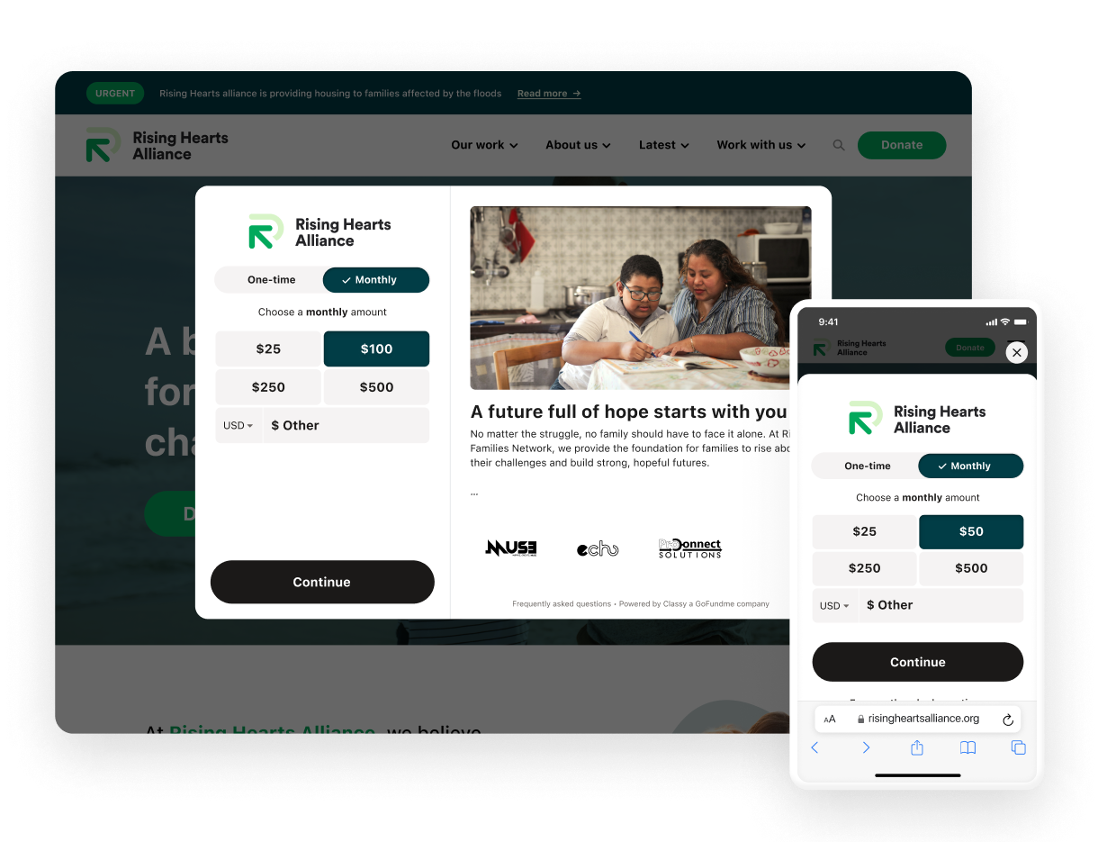 We want to reach the most people and make the most impact, and for that, we need a stable platform and the best tools in place to ultimately change the world. We were so grateful to the Classy team. We’ve already heard amazing feedback from supporters about how easy it is to give.