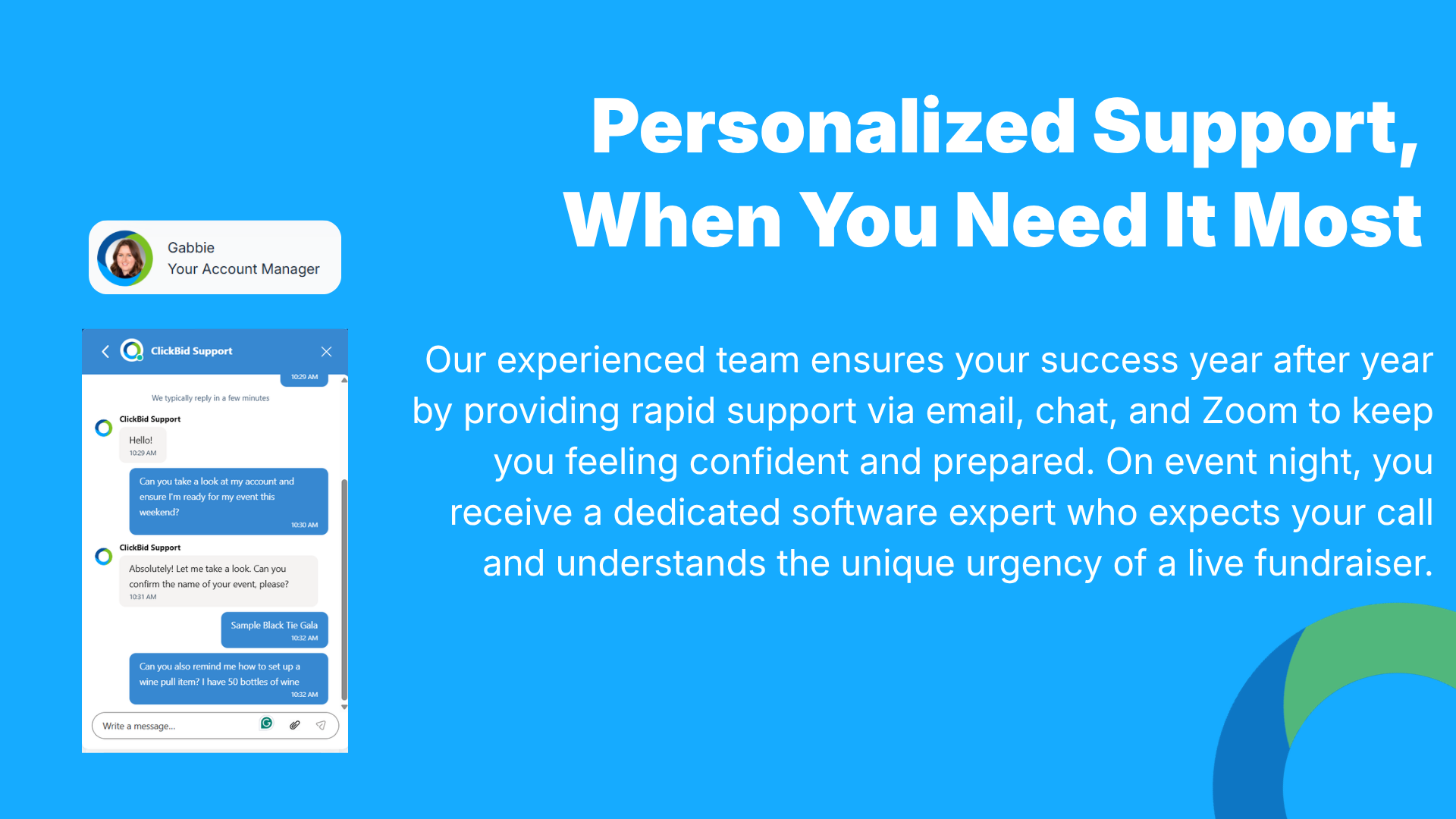 Hands down the best Event Fundraising platform! What really sold me on ClickBid is their personal commitment to your event’s success. Having a designated expert just a phone call away the day of the event is invaluable!