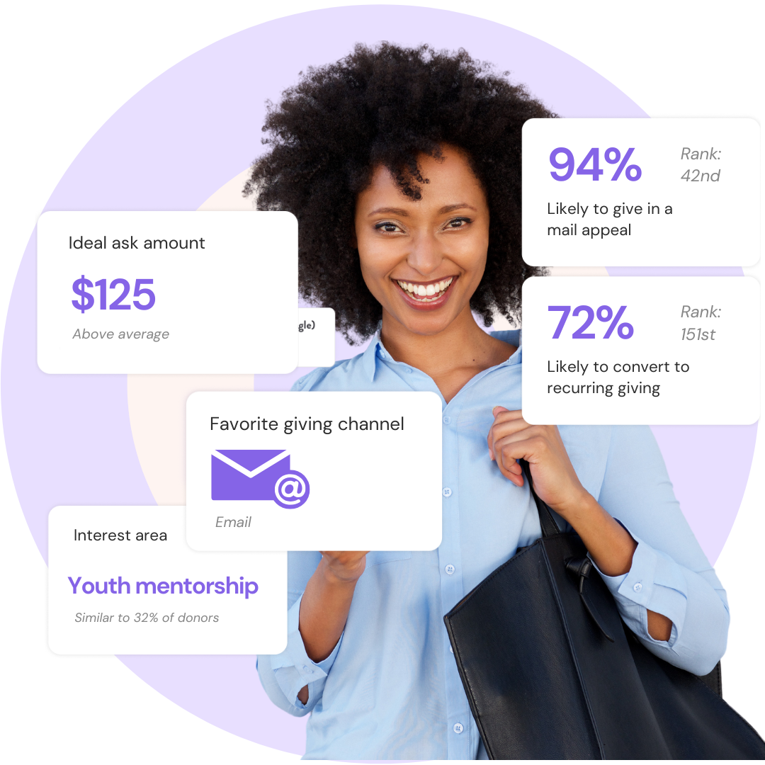 Instantly identify your best donors for every campaign with AI-powered segmentation. Target the right audiences for every appeal and discover new fundraising opportunities based on your donor interaction data.