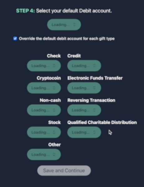 Ability to specify debit account by gift type