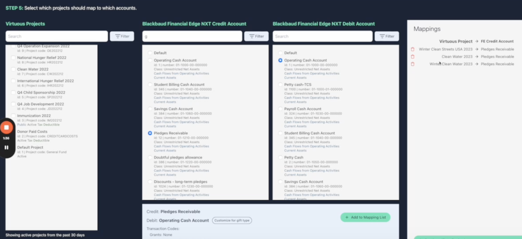 The tool allows for significant flexibility on how data can be mapped, including by gift type, project, debit and credit account, and more.