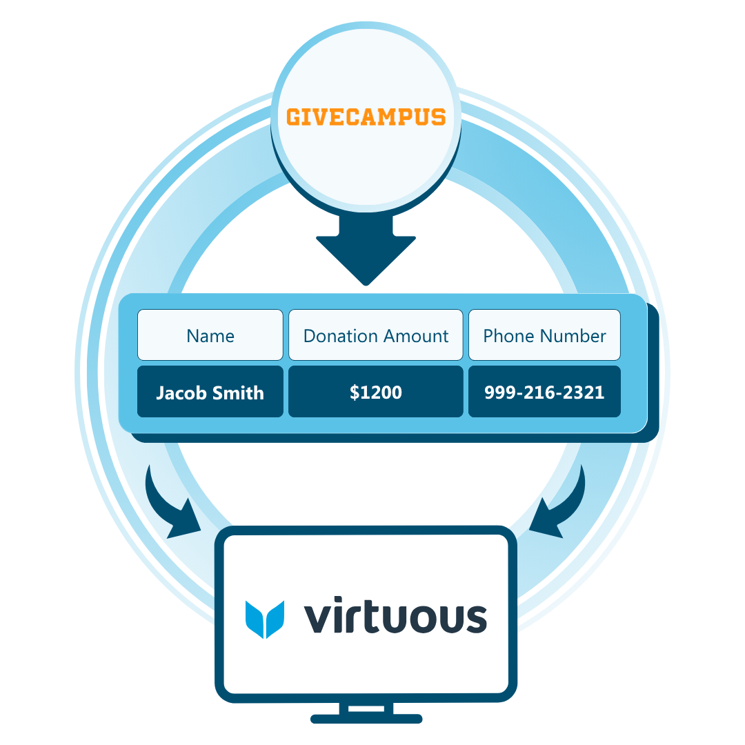 Omatic adapts to each organization’s unique workflows and field structure with custom configurations. Automatically update contact information, giving history, and other data in Virtuous from campaigns in GiveCampus.