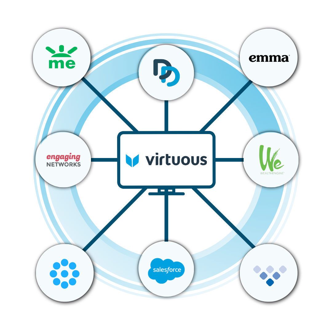 Unlock a growing library of purpose-built connectors that integrate Virtuous with the systems you already use, from fundraising and events to volunteer management and accounting.