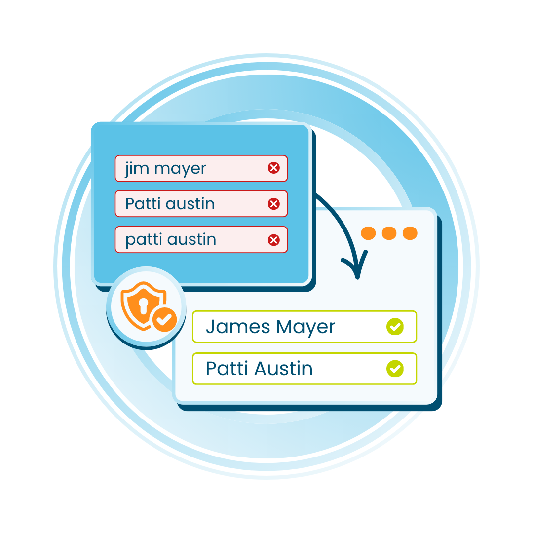 Identify and flag potential duplicates for review, while automatically cleaning, standardizing, and formatting data in transit, ensuring names, email addresses, and field values are always accurate and ready to use.