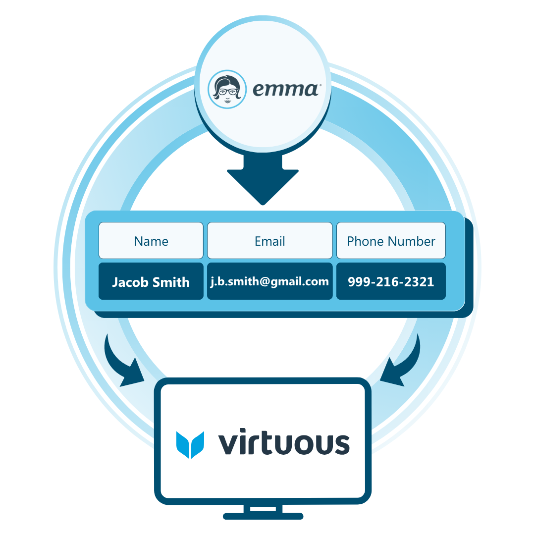 Omatic Cloud enables a bidirectional, fully automated integration between Emma and Virtuous. Through Omatic Cloud, your team can connect supporter information such as contact names, email addresses, campaign and appeal data, audience segments, responses, communication preferences, and custom fields — all automatically and in real time.