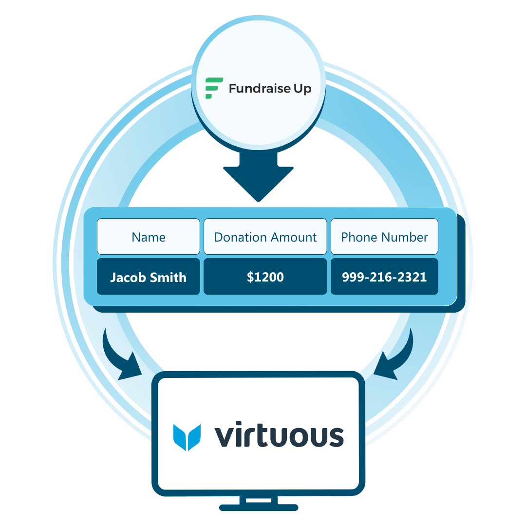 With Omatic, nonprofits can connect Virtuous to Fundraise Up, bringing together contact records, transactions, and other supporter details from Virtuous, along with digital fundraising data for improved insights, strategy, and fundraising results.